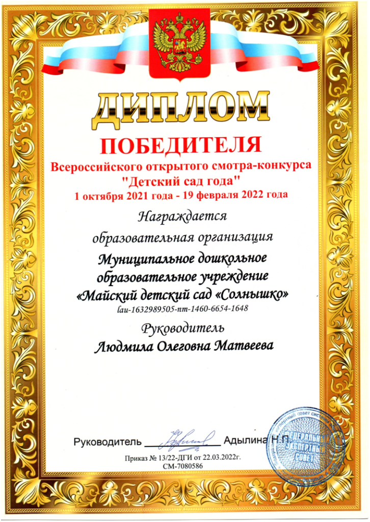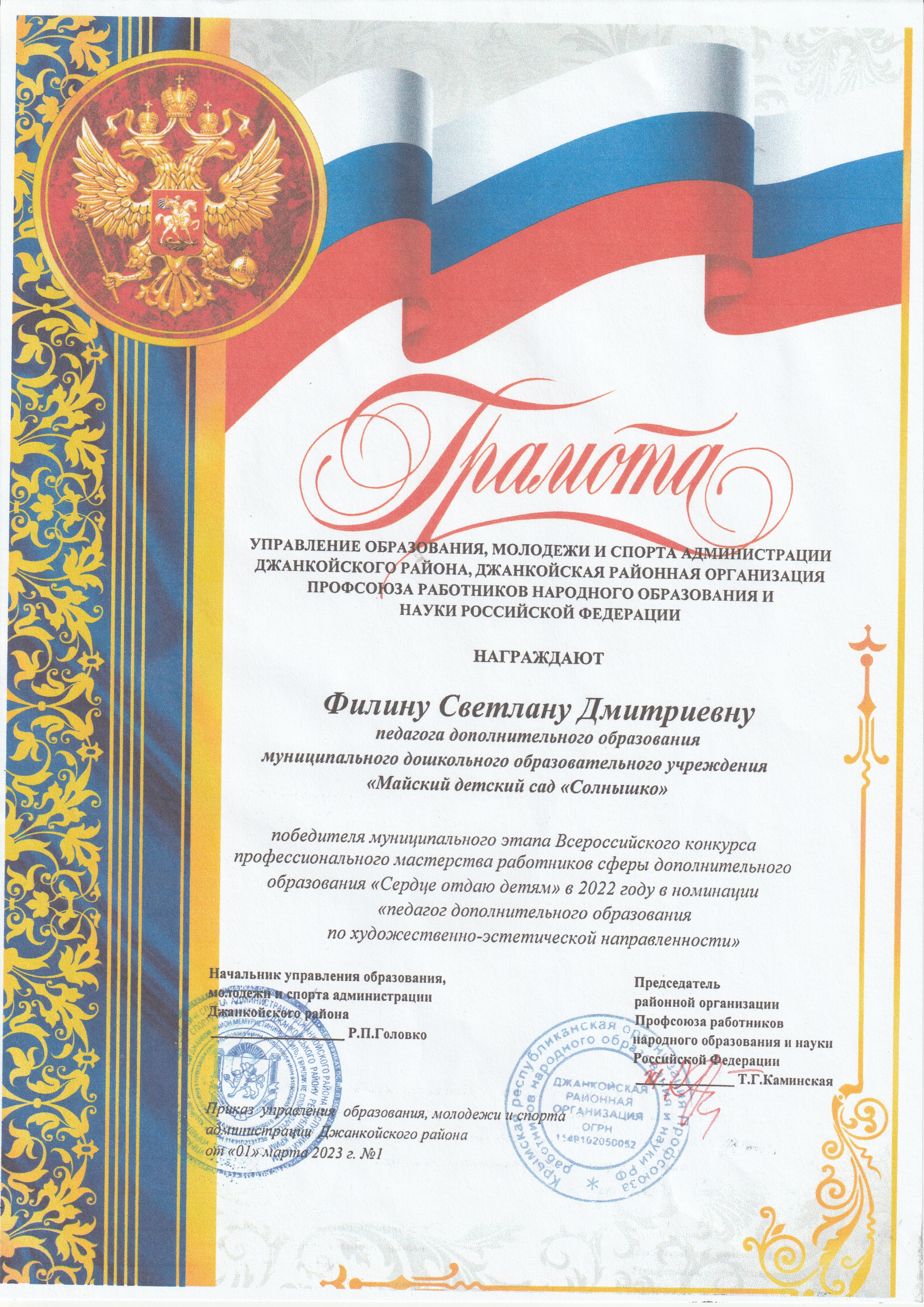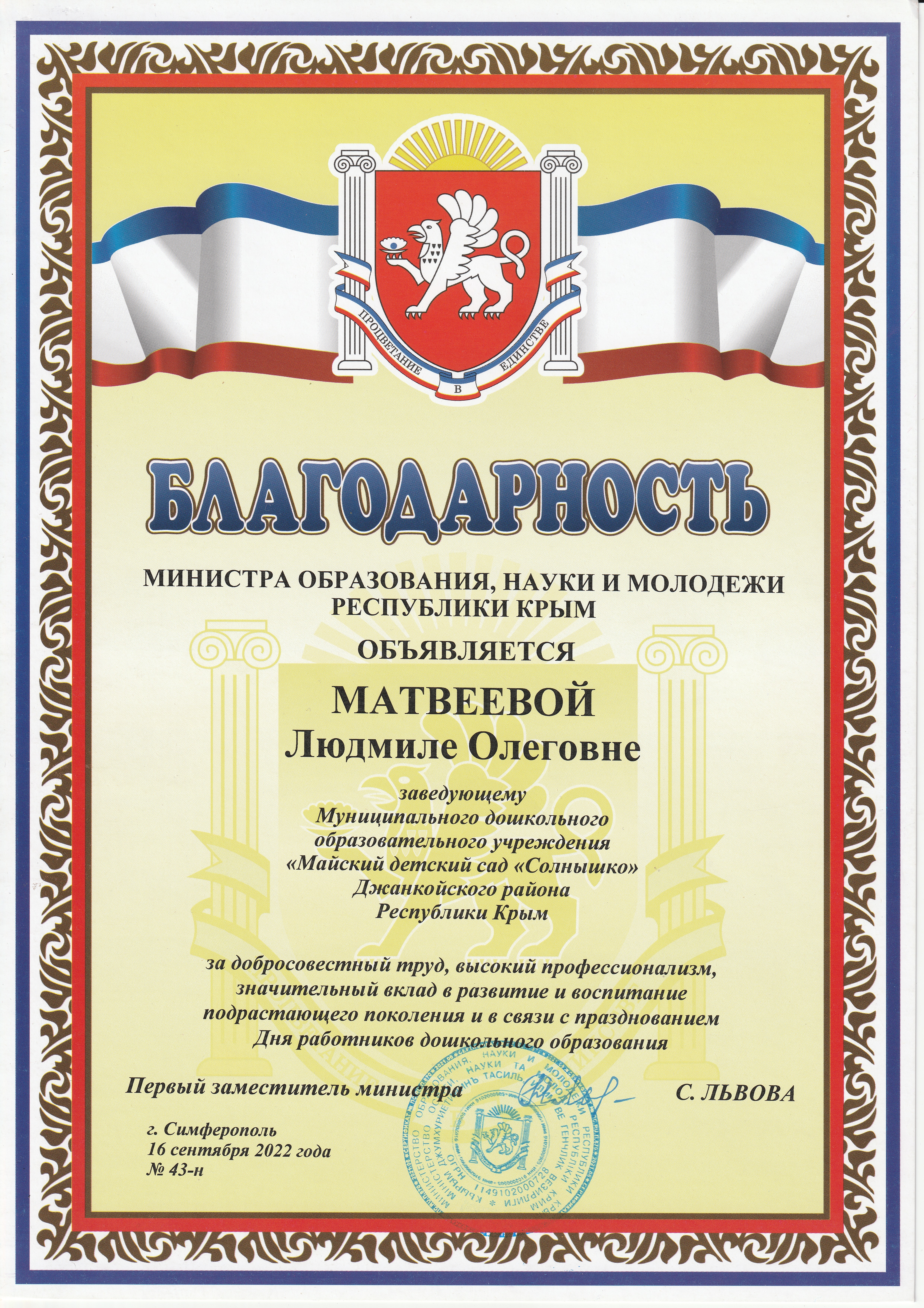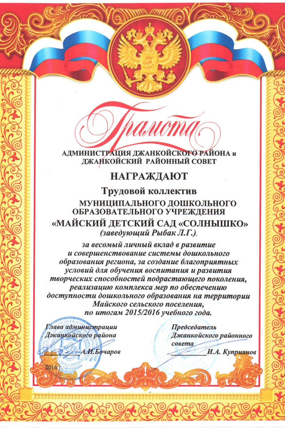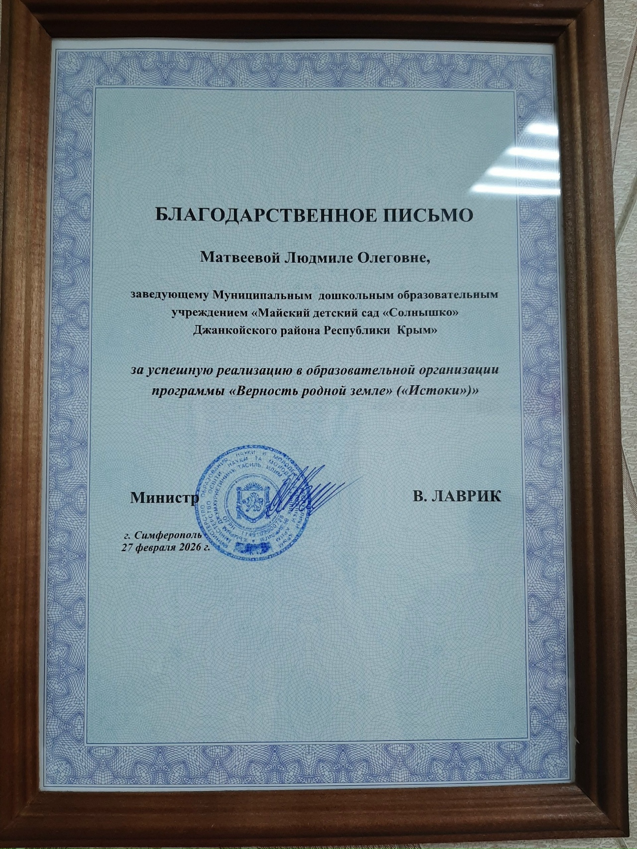 Муниципальное дошкольное образовательное учреждение Майский детский сад Солнышко Джанкойского района Республики Крым