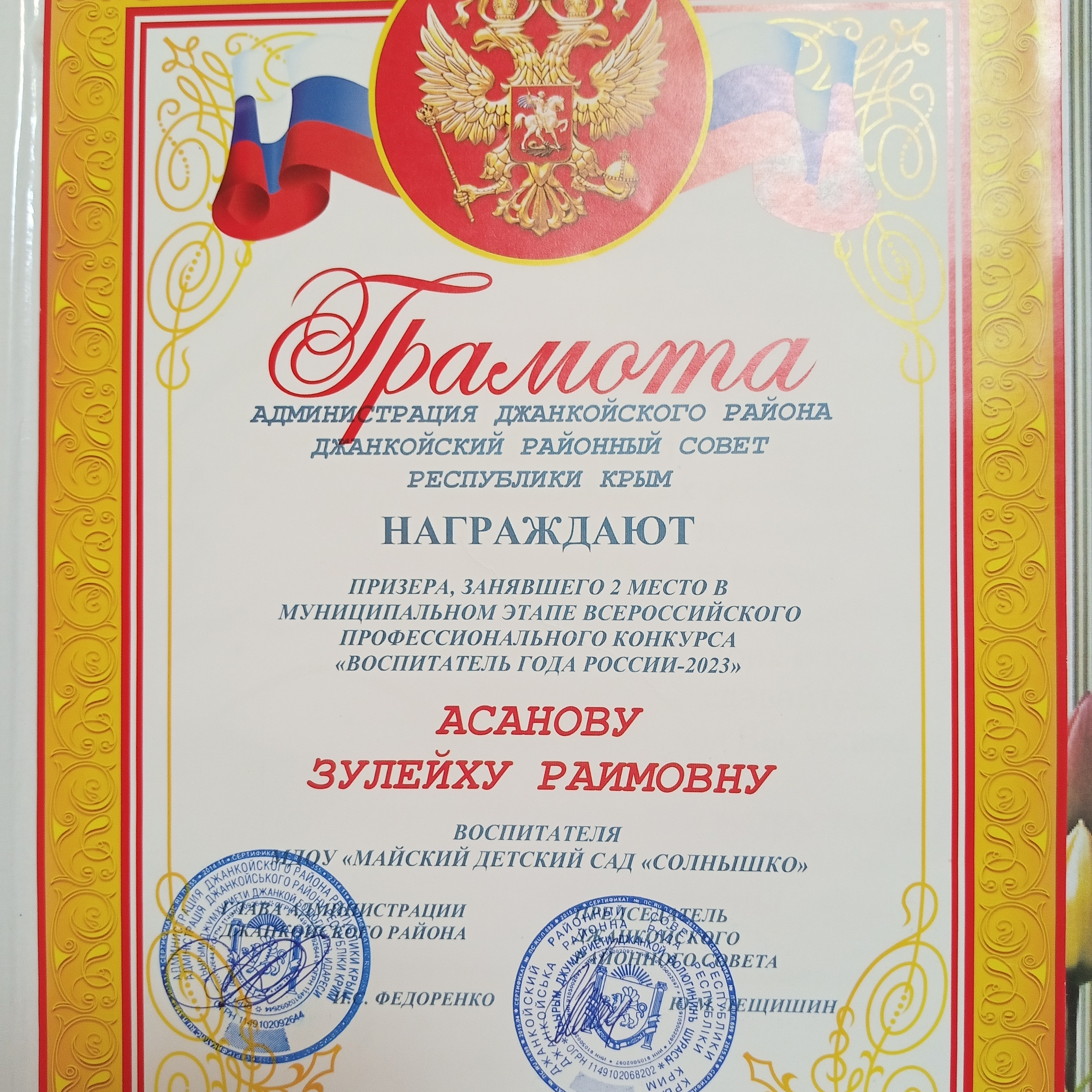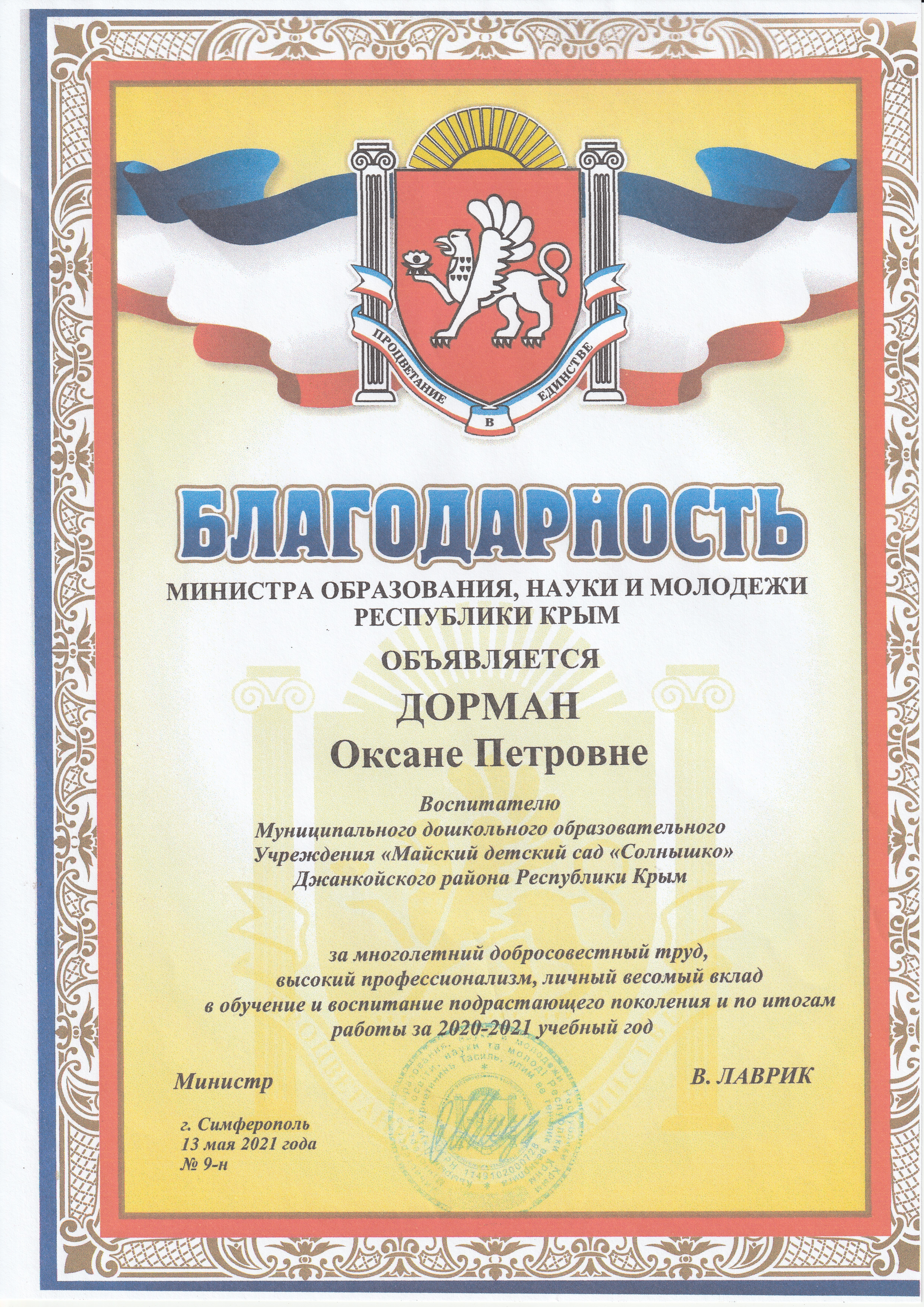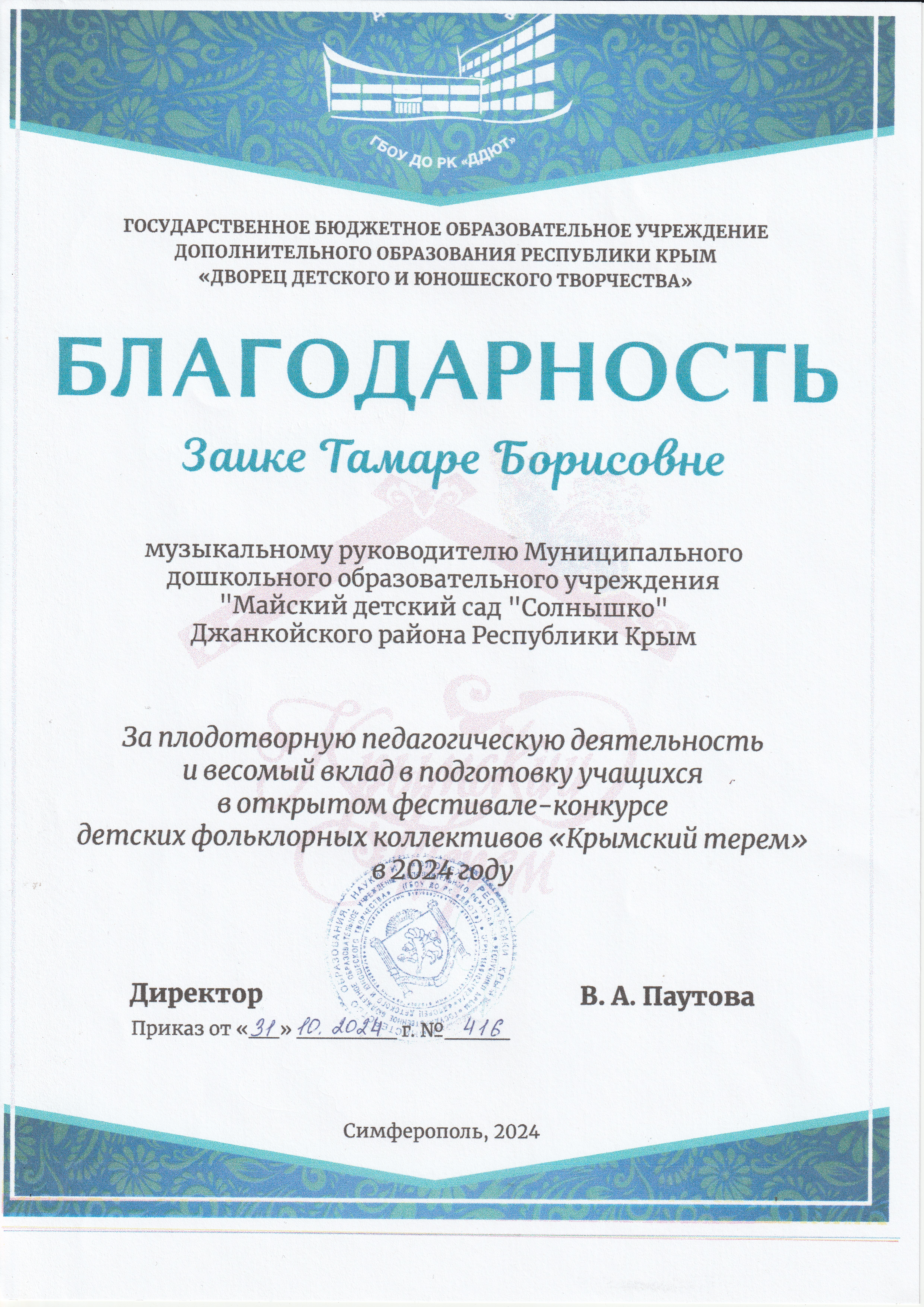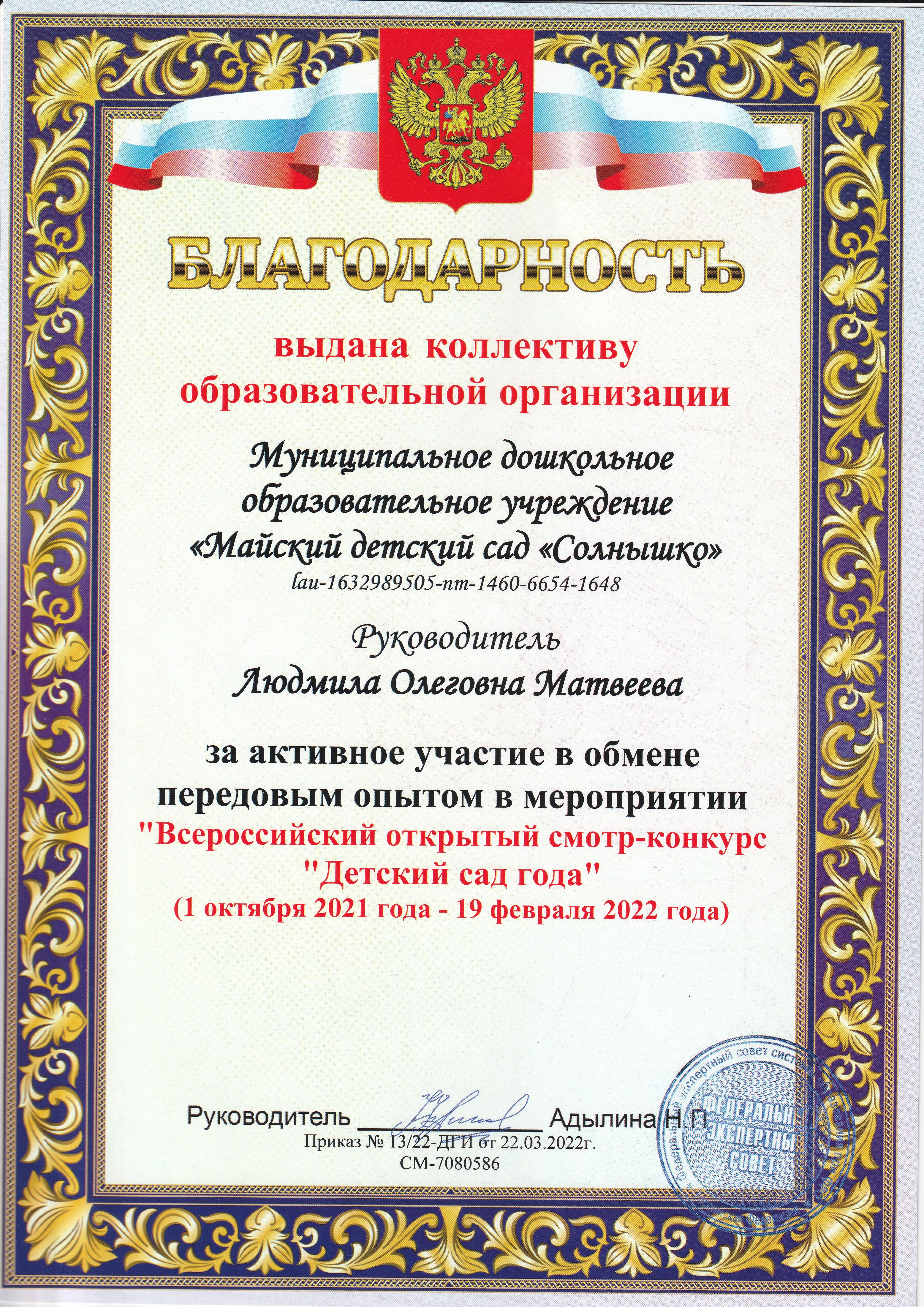 Муниципальное дошкольное образовательное учреждение Майский детский сад Солнышко Джанкойского района Республики Крым