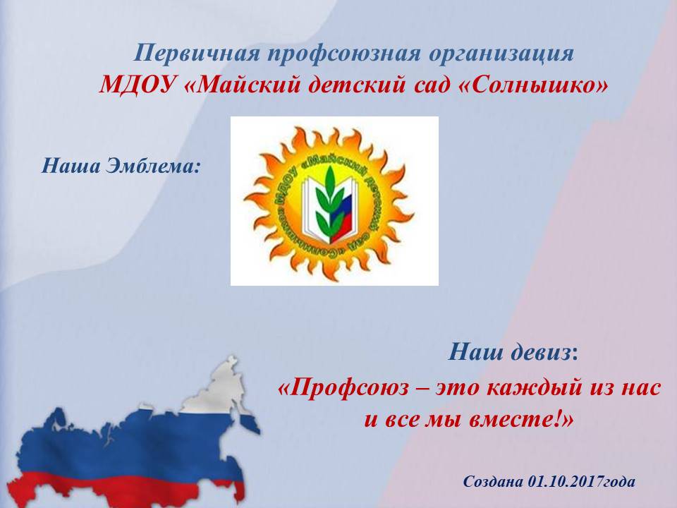 ПЕРВИЧНАЯ ПРОФСОЮЗНАЯ ОРГАНИЗАЦИЯ МДОУ "МАЙСКИЙ ДЕТСКИЙ САД "СОЛНЫШКО"