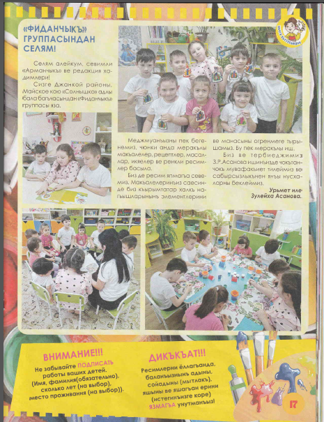 18 февраля 2026 г.Радость и гордость! Наши юные художники из группы "Фиданчыкъ" попали на страницы детского журнала "Арманчыкъ"!